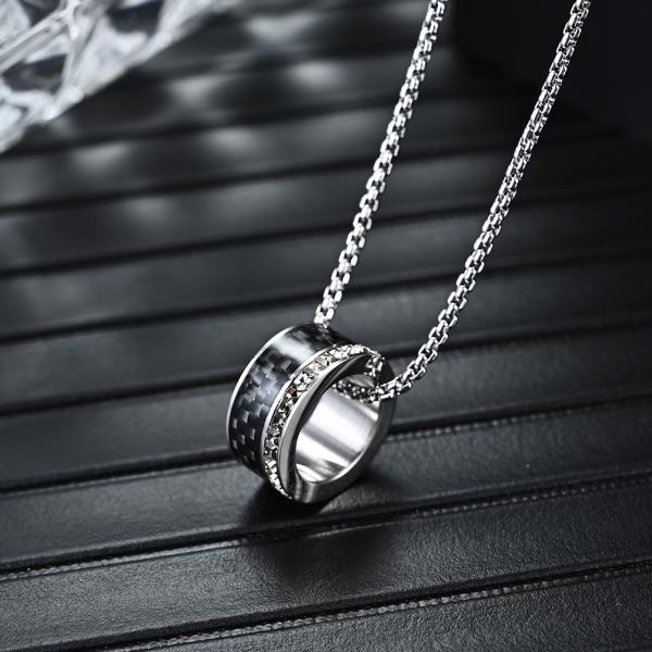 Band Shape Carbon Fiber and Stainless Steel Pendants Necklaces Men's jewelry Men's wedding Bands